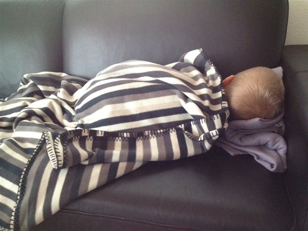 Vi var til fællestræning i den lokale hal i dag. Da vi kom hjem, ville sønnike ikke have frokost - er så trææt, sagde han, og gik ind og lagde sig på sofaen med et tæppe over.