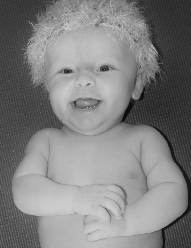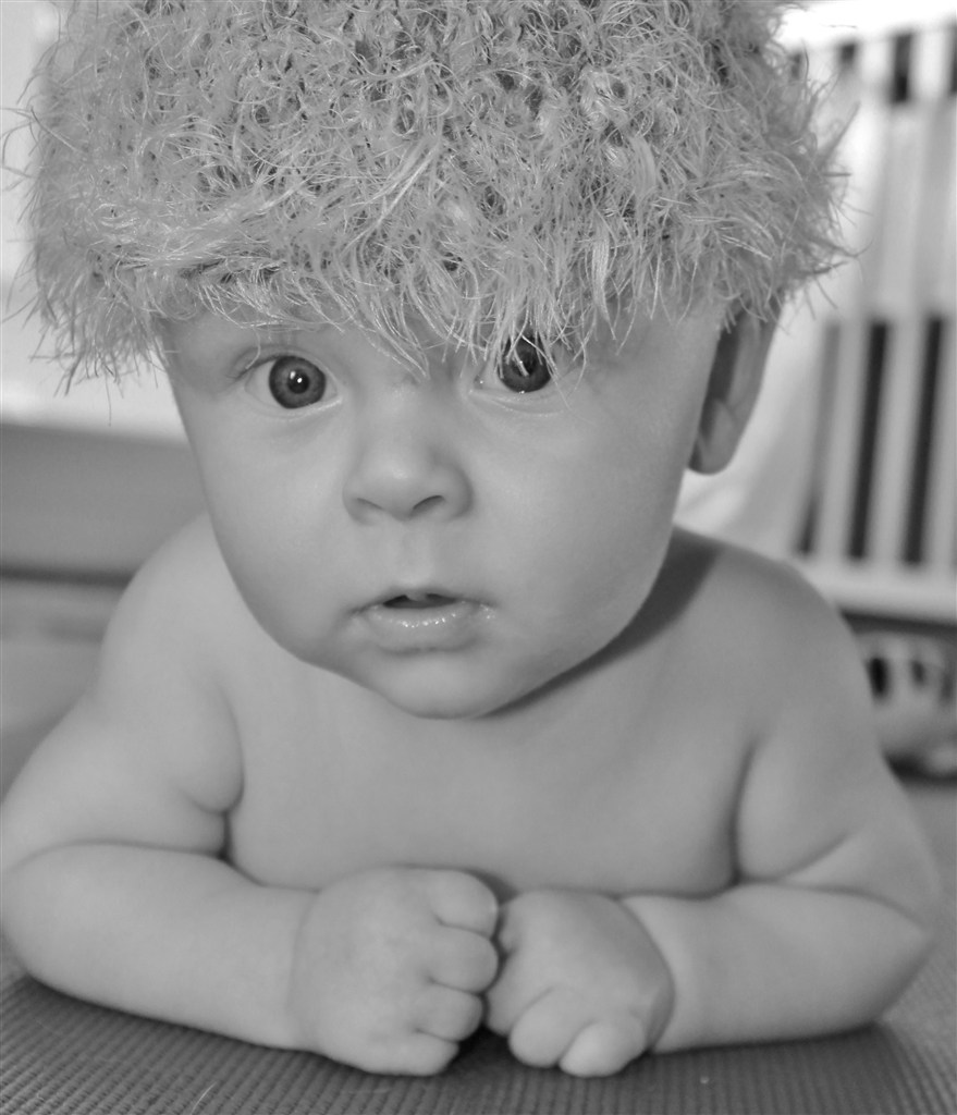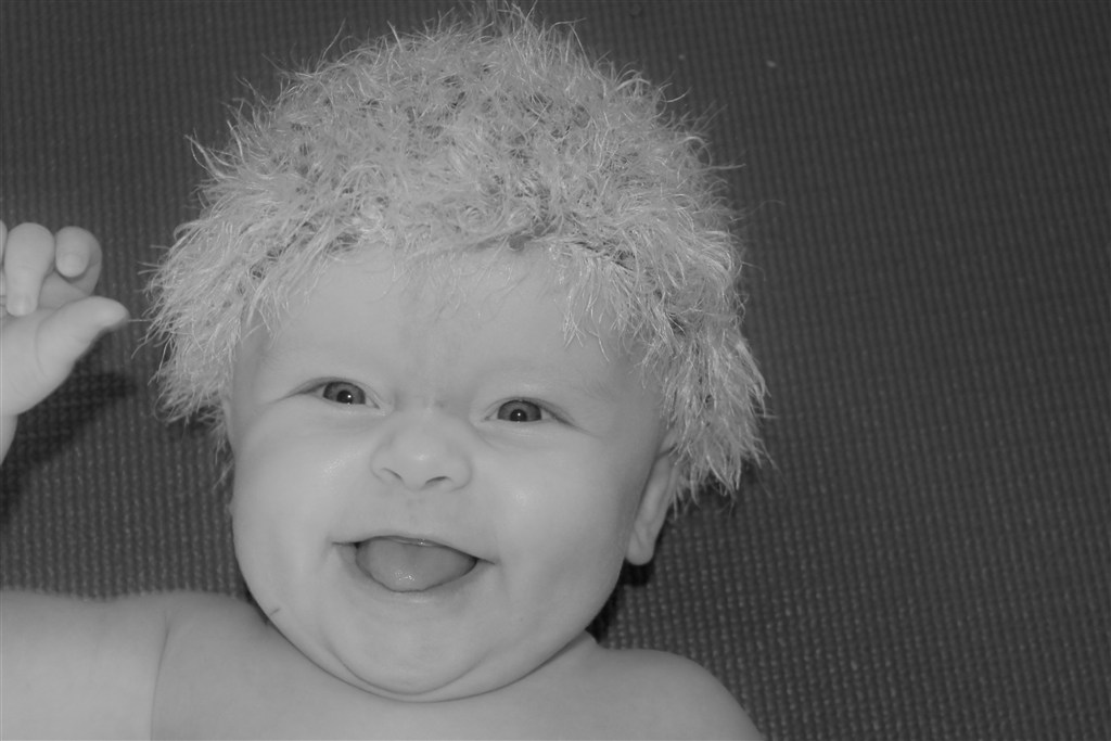 MorDk skriver: Griner! Hvor ser han bare sød ud! Er vild med det aller sidste billede... Den hat der... det ligner hår!! hihi