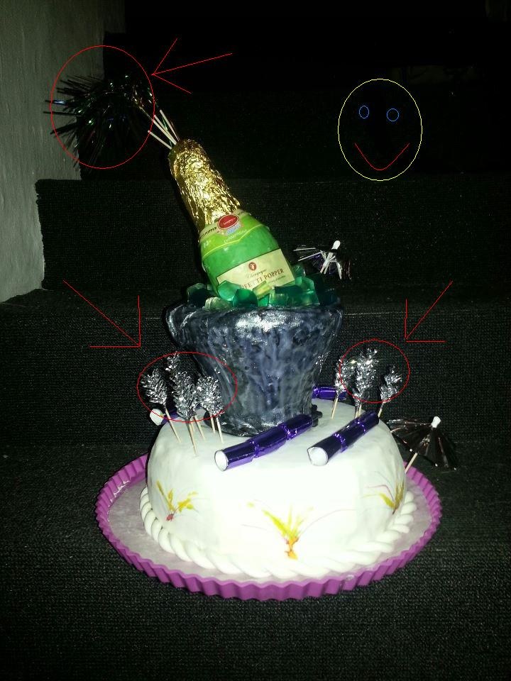Hahah ;-) Nej alt i selvekagen er spiseligt, ikke nytårspynten ;-) Ved ikke hvad det flumseværk er du omtaler