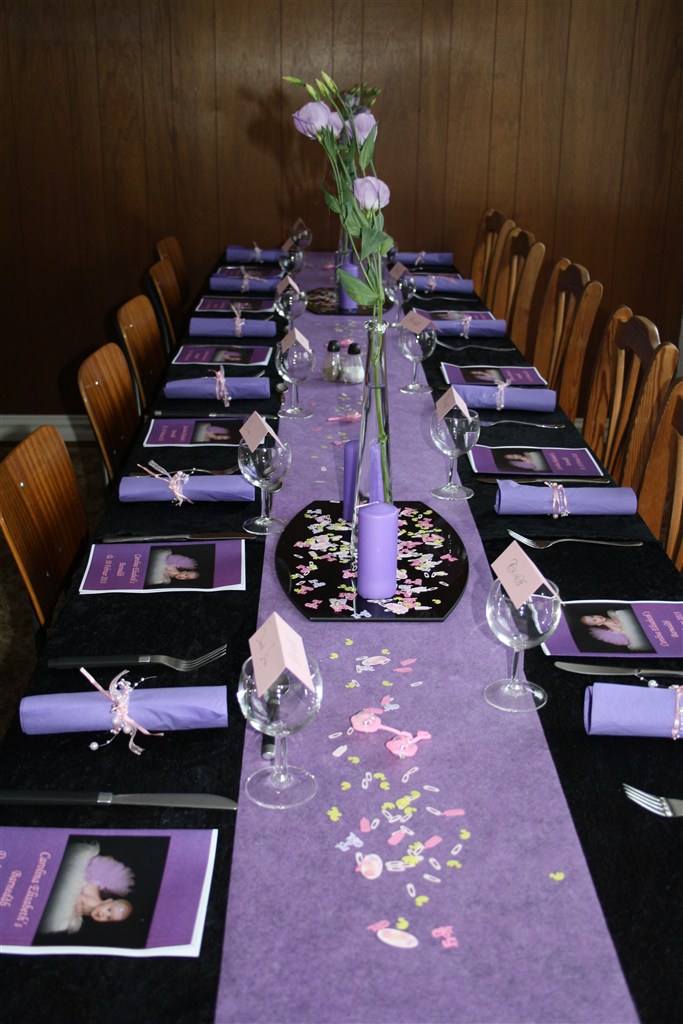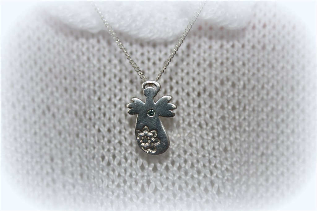 Et af bordpynten, et af dåbsbarnet og et af den kæde hun fik af sin gudmor og havde på i kirken. Det er en skytsengel hvor der bagpå står "følg dit hjerte"
