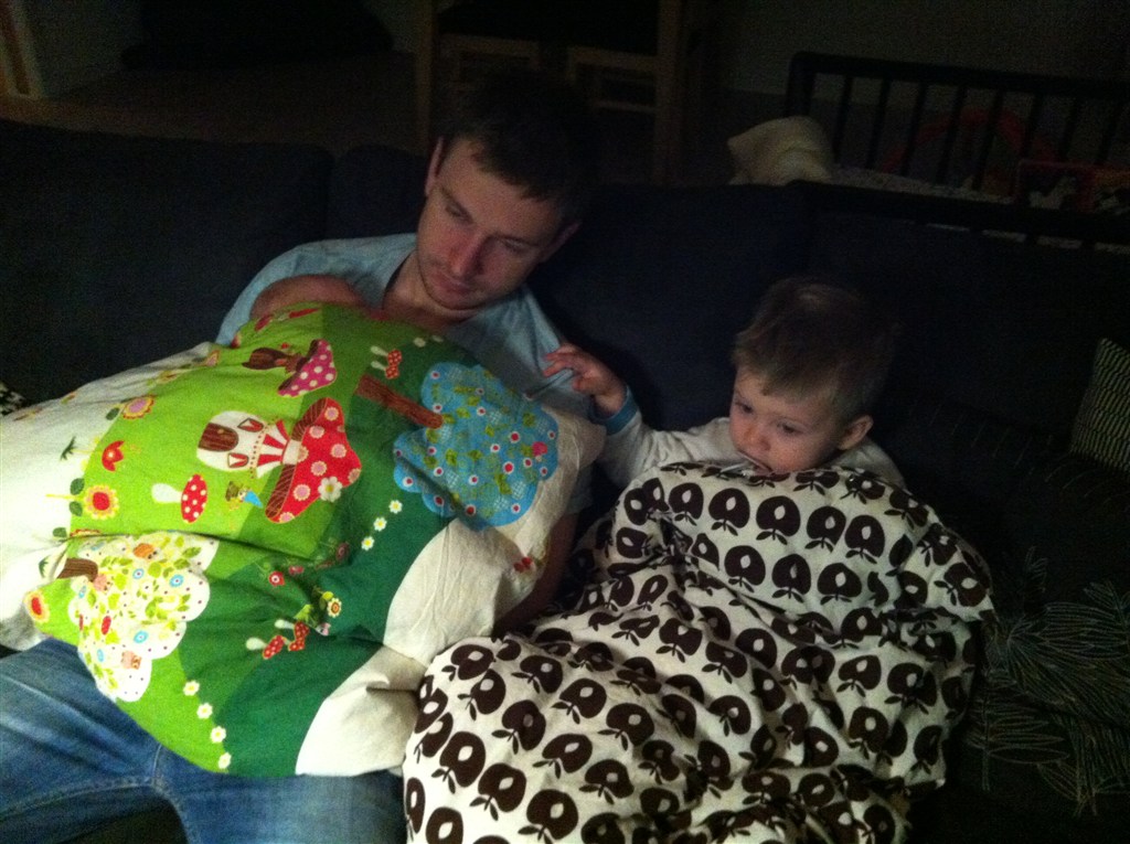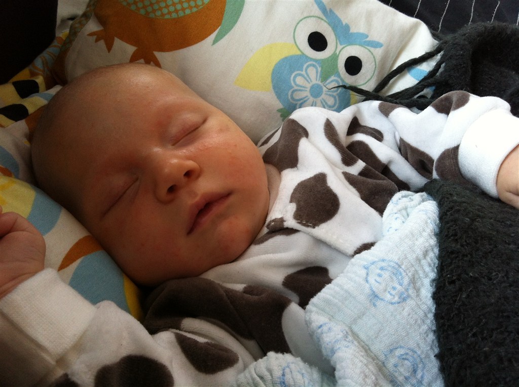 om dagen sover han så kun ca 2 timer af gangen, men det er jo også helt fint.