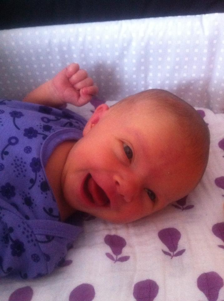 Hun har været i sit første bad idag og navlestumpen er faldet af.