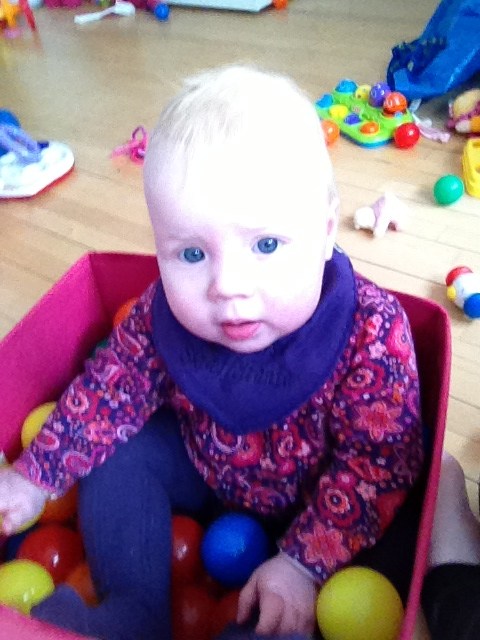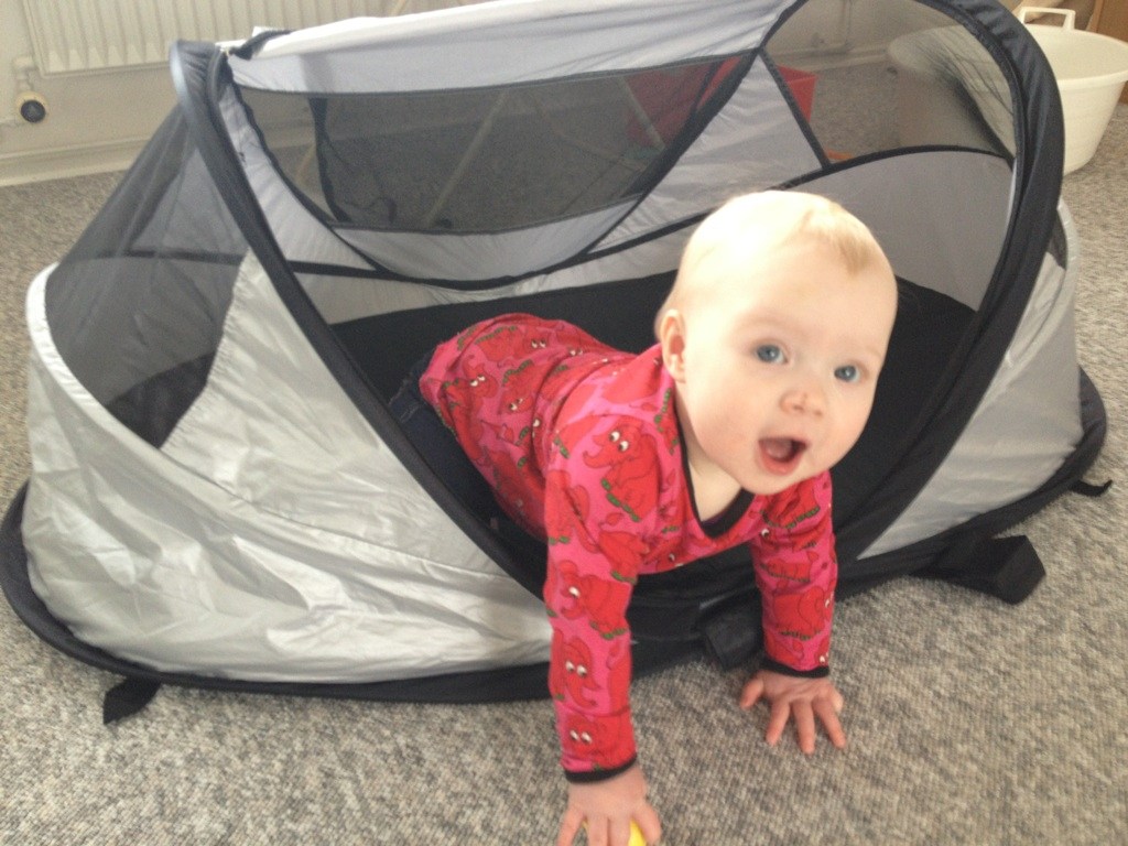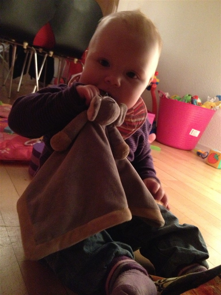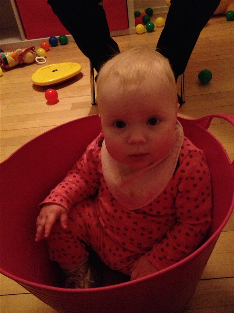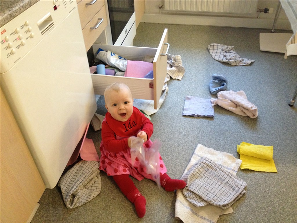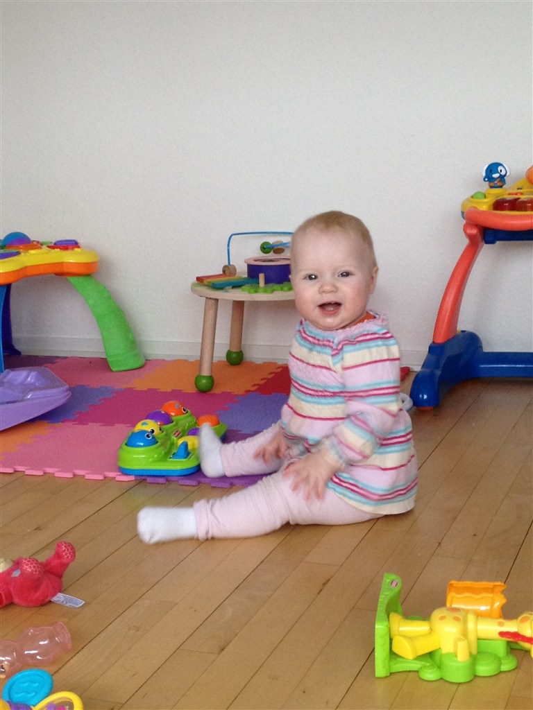 Hun kan SÅ meget! Kravler selv op og ned af sofaen, kravler op af trapper, løber snart også. Jeg kan slet ikke følge med i den fart der!