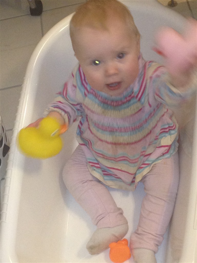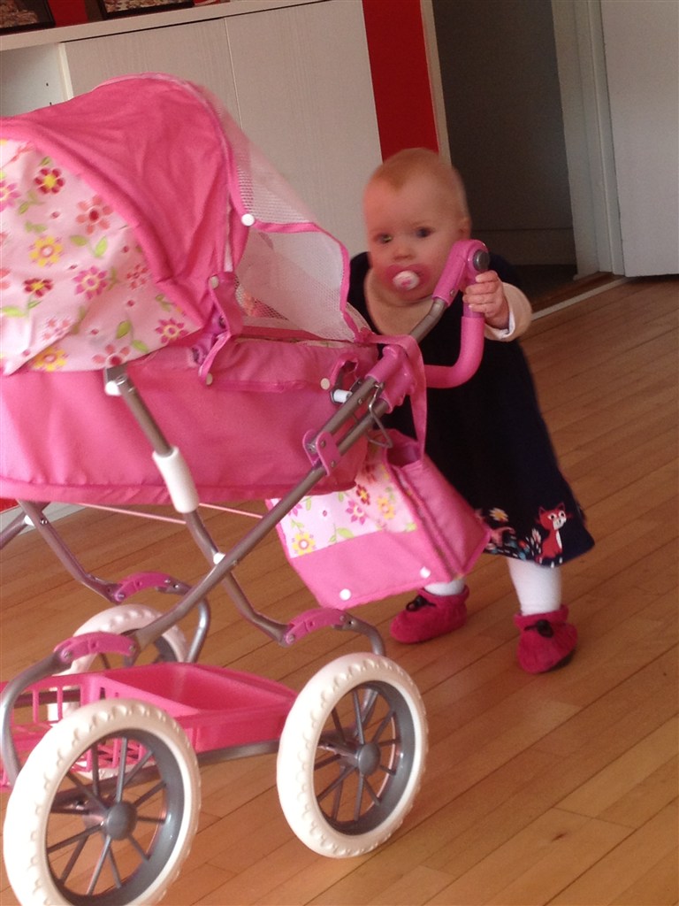 Ca. 14 dage før hendes 1 års rejste hun sig op og gik