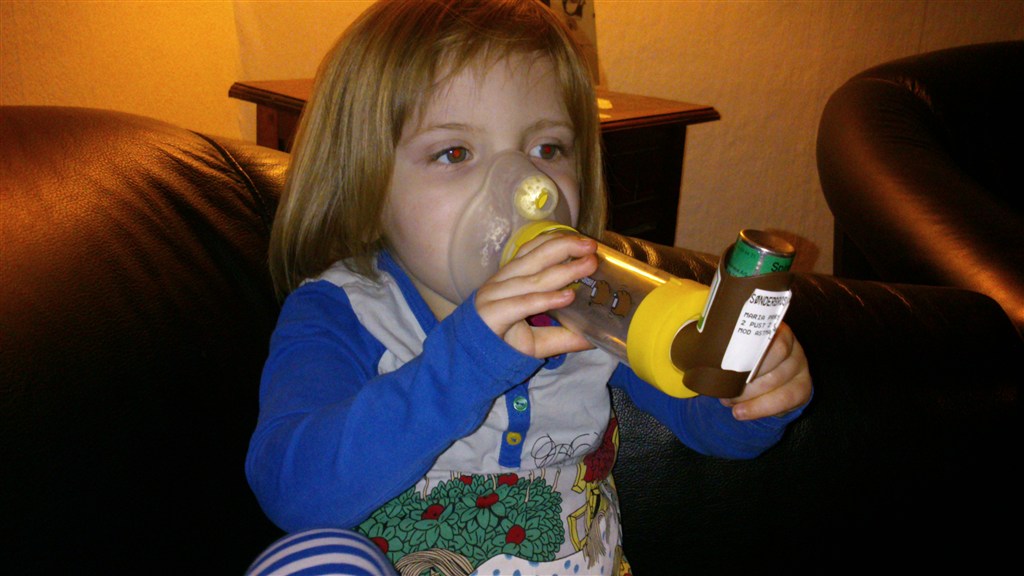 Marias falsk strubehoste er RIGTIG slem i tiden så hun får masken med to slags medicin 8 gange i døgnet og hun holder den selv. Tror hun kan mærke det lindrer. Min store pige