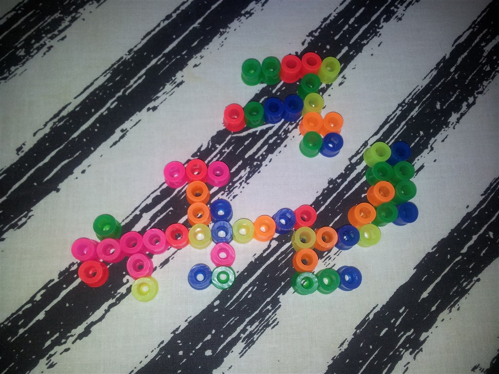 Elias og jeg var stået lidt tidlig op i morges så vi gik i gang med at lave perler. Han plejer bare at sætte et par stykker på forskellige steder på pladen. Men i dag kunne jeg få ham til at sætte dem ved siden af hinanden og mange perler....