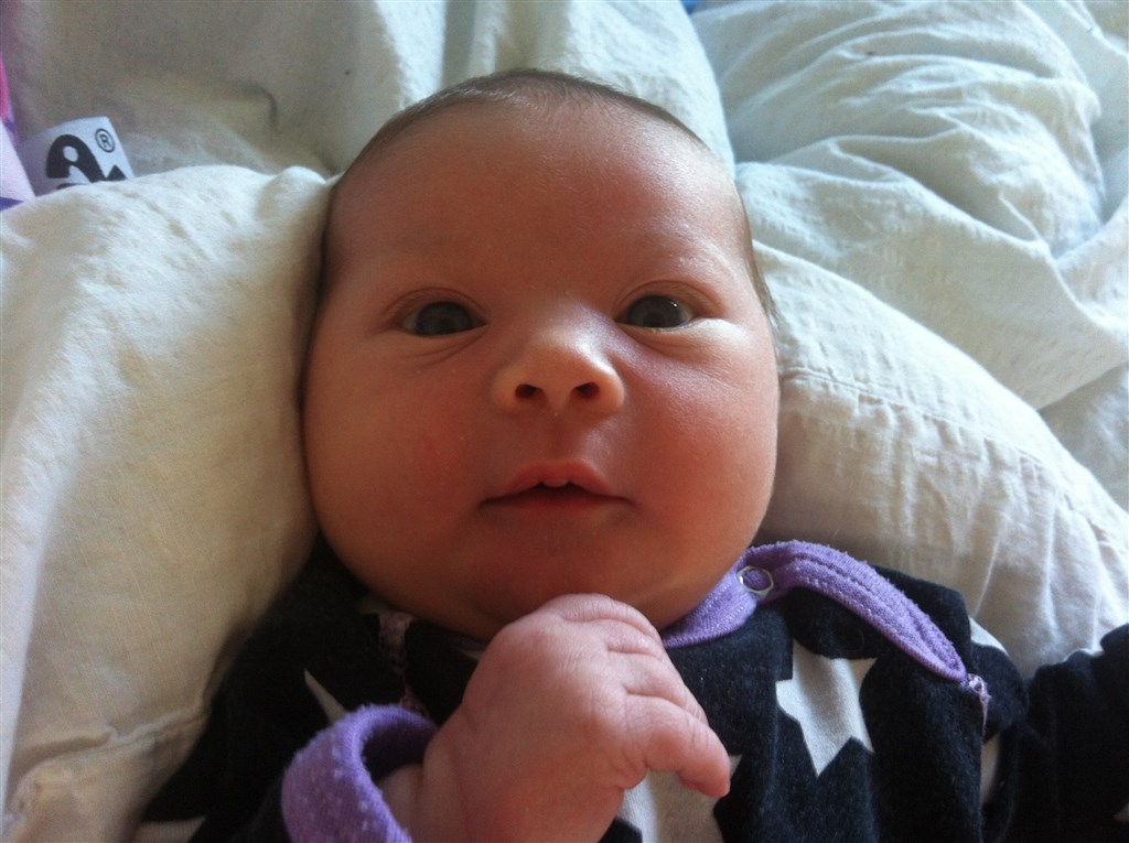 Vi har det alle sammen rigtig godt, alting går bare så fint - amningen kører og hun er så dygtig! Sundhedsplejersken var her i torsdags der vejede hun 4040 gram (fødselsvægt: 3880 gram, men hun tabte sig helt ned på 3416 gram) så hun har taget rigtig flot på