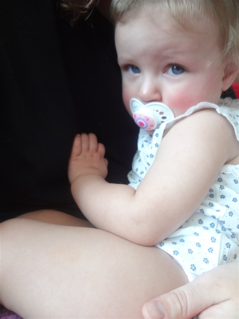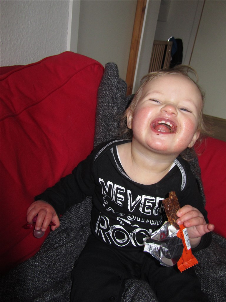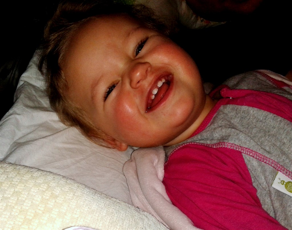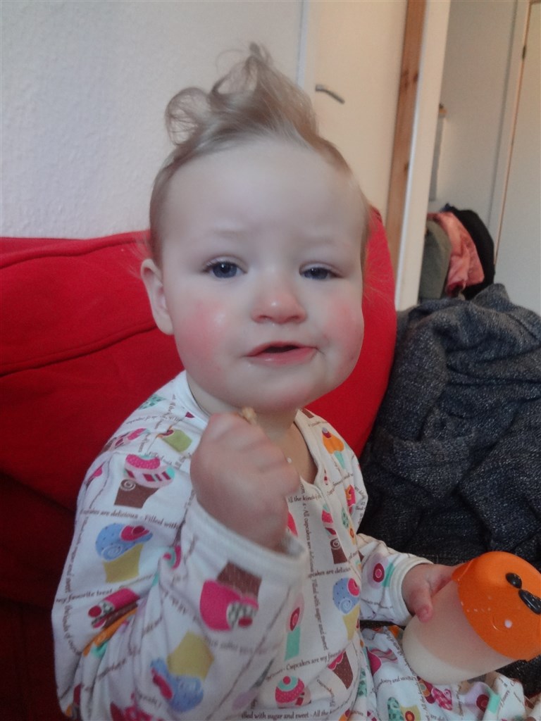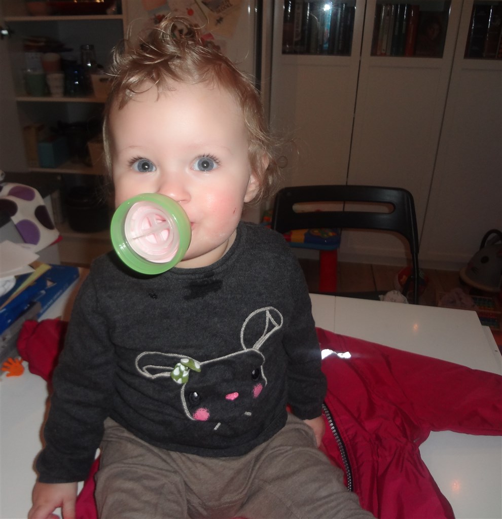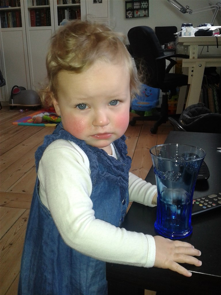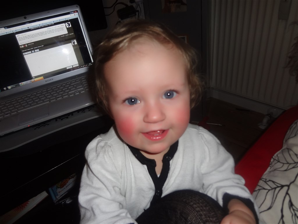 Hun har nu 14 tænder (fik lige 6 på én gang)og efterhånden et ret stort ordforråd
