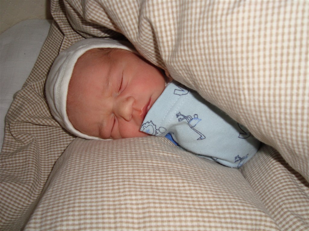 Et par billeder skal der til. På det første er han små 9 timer gammel og det andet er lige taget. Han ligger lige her ved siden af mig og sover:0)