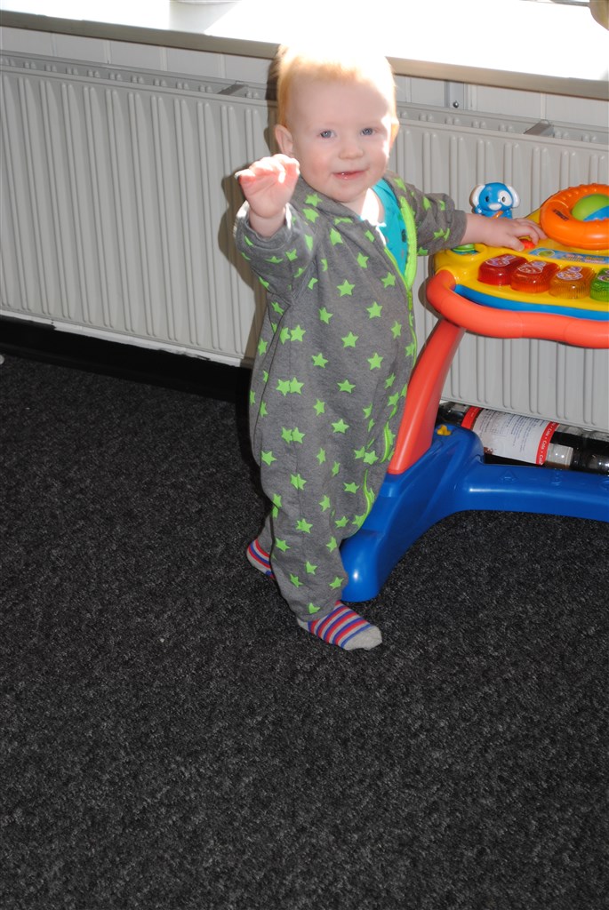 LilleLene skriver: Min lille mand bliver snart 10 mdr og starter i dp på tirsdagdet bliver bare spændende at se hvordan hana tager detOG så får i lige billedespam Han er lige begyndt at stå uden støtte og har 2 gange taget 2 skridt fra stående tilstand hen i mine og min mors arme