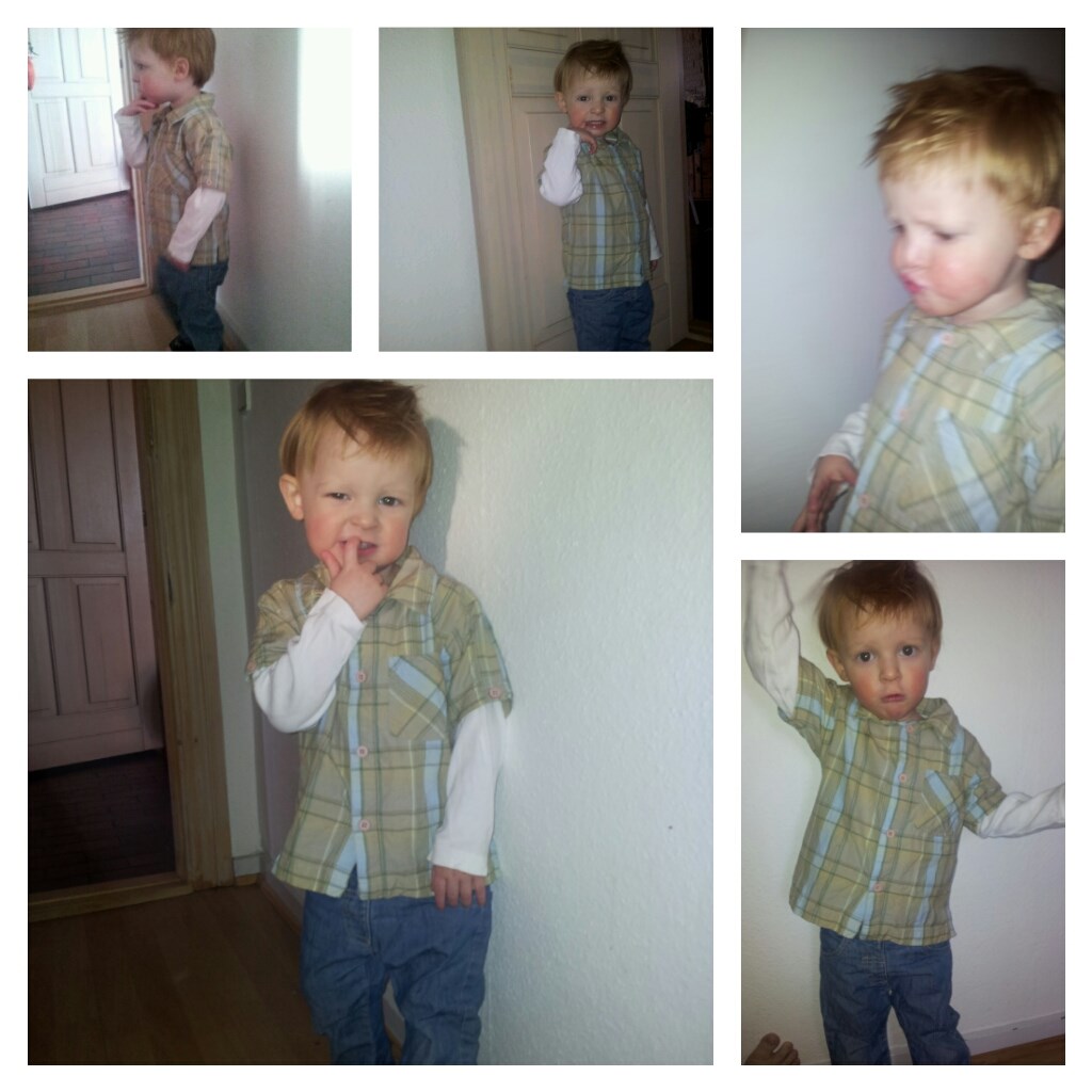 Jeg ville lige tage et billede af Elias med strit hår og klip klapper. Han blev så ved med at sige mere Så det endte med en lille foto session På det store billede stod han med ryggen til og da blizen kom vendte han sig om posè sådan der. En rigtig lille modelEr han ikke bare lidt lækker??