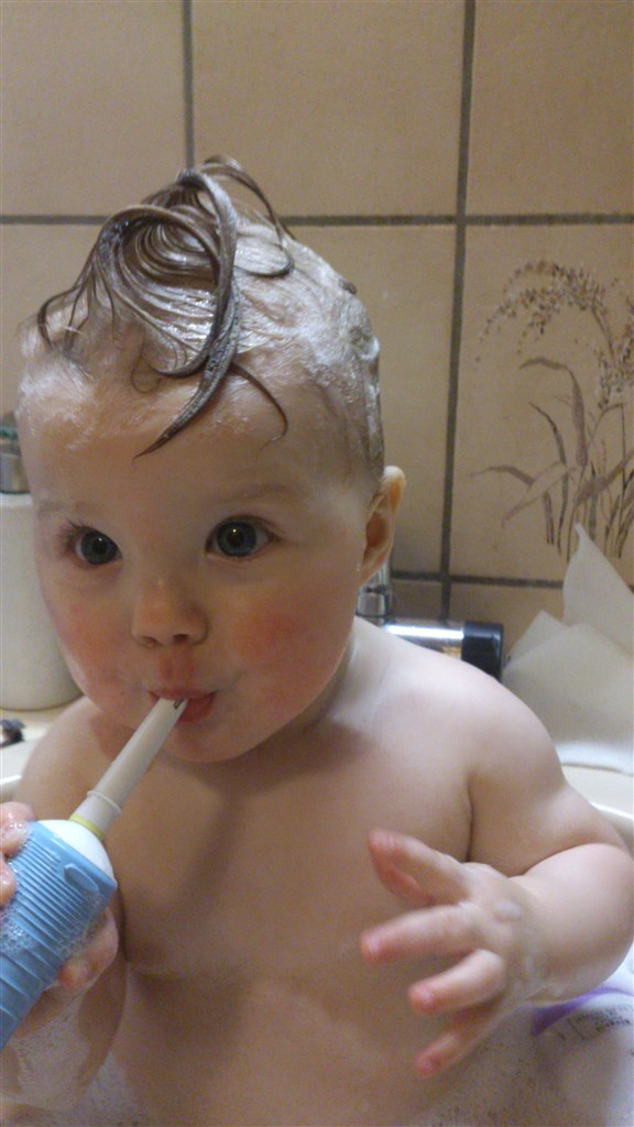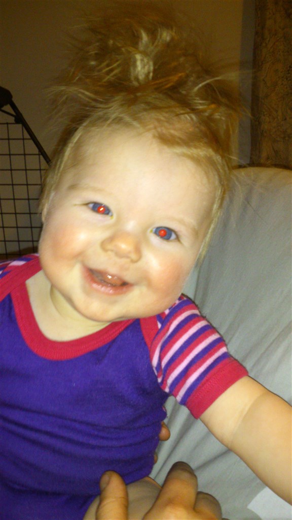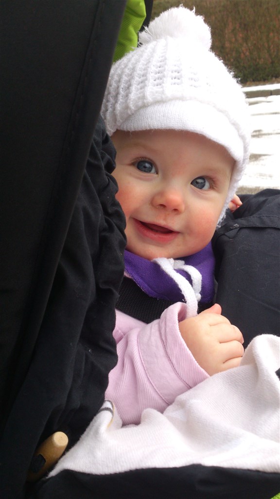 Størrelse mæssigt er hun stadig en lillefis. Hun lagde ud med en 'kamp vægt' på 3190 g og 51 cm, men tabte sig dog til 2910 g inden det vendte igen. Vi har sammenlagt haft 14 dage med nattero siden november pga konstant sygdom; snot - hoste - feber -virus'er osv og ja nu skriver vi april og hun er stadig snottet. Al den konstante sygdom har gjort at hendes kurver knækker, men vi ved jo det er pga sygdom - så vi er helt rolige... Så en lillefis er hun stadig med sine 71 cm og omkring 8,8 kg.