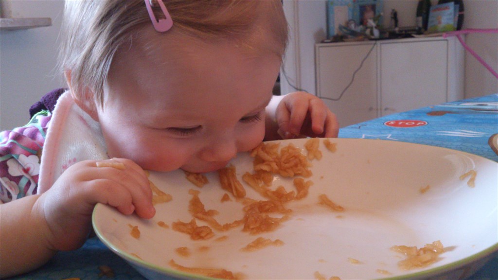 Nu her som snart 1 årig har hun tjek på stableklodser - 'put i kas' legetøj mm og bare en ægte lille rod..