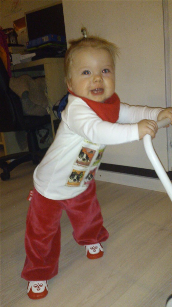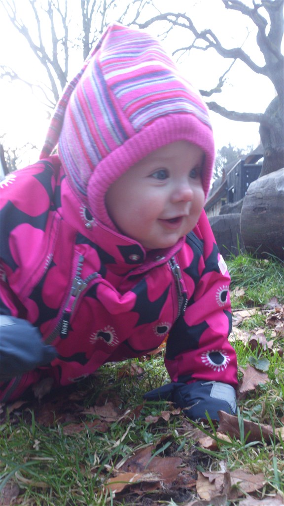 Hun var 5 mdr og 10 dage, da hun kravlede rundt for fulde fart.