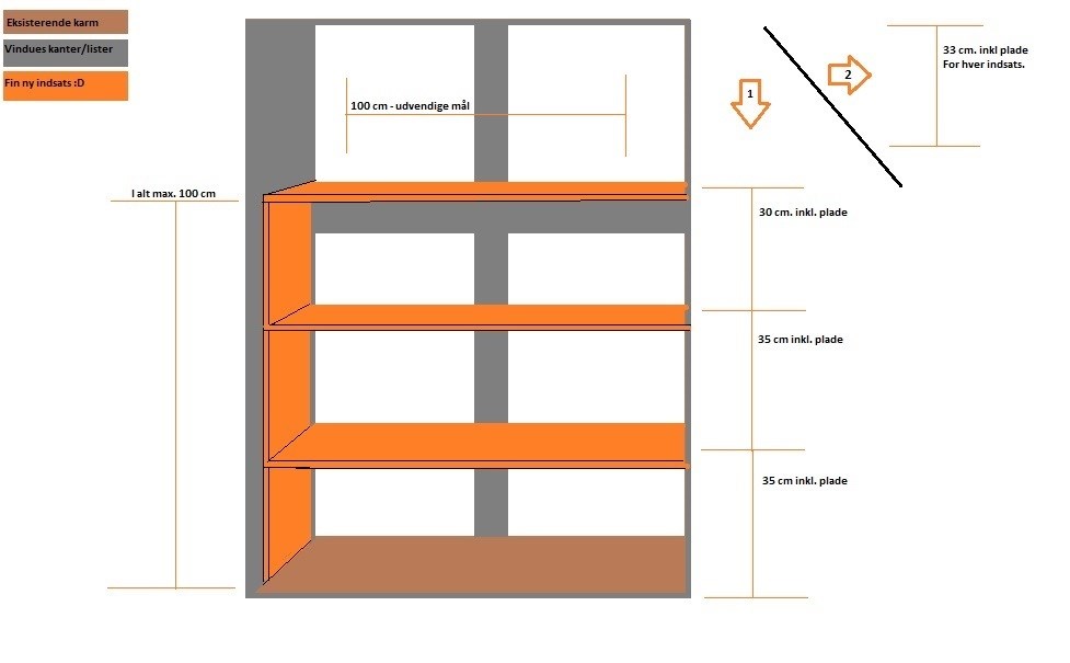 En indsats til vindueskarmen, som giver 3 ekstra hyldepladser.