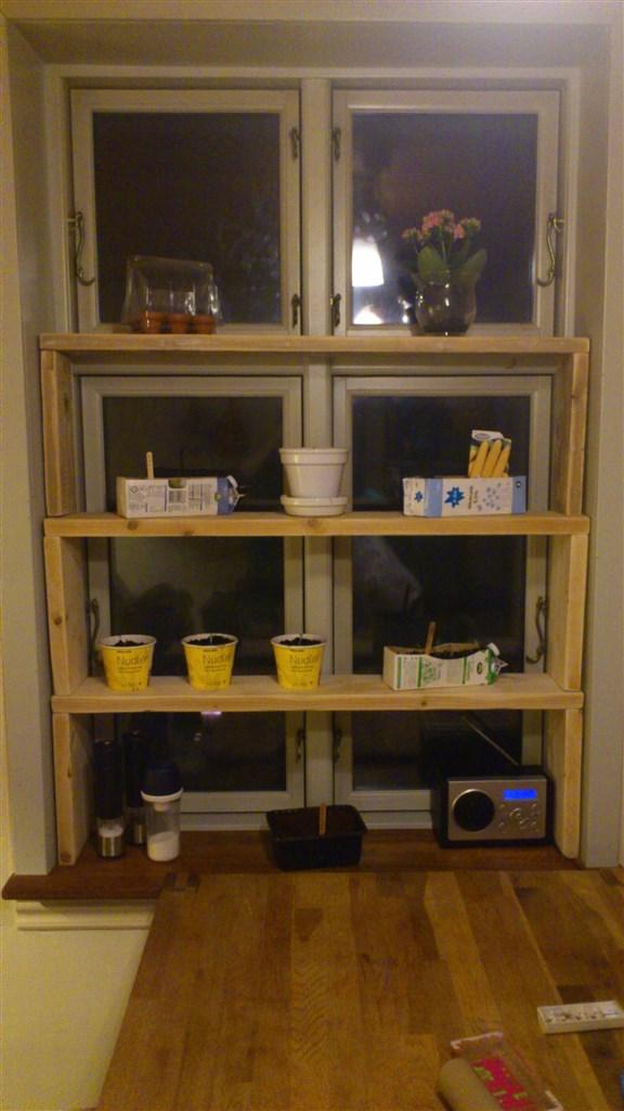 I øvrigt tror jeg ikke min udlejer ville blive så fjollet glad for mig, hvis jeg lige skruede 3 hylder op i vinduet