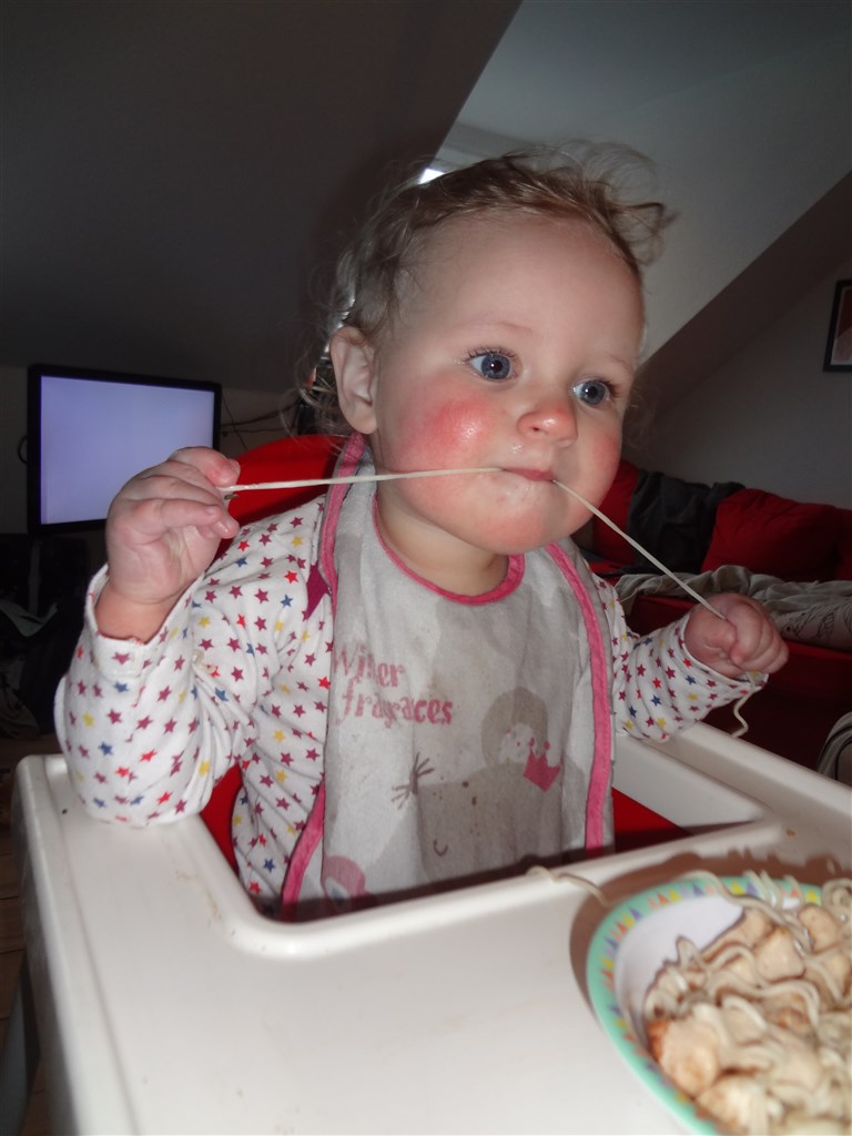 Hun har efterhånden et kæmpe ordforråd og er blevet rigtig god til at lade mig vide hvad hun vil (spise, drikke, sove osv.)