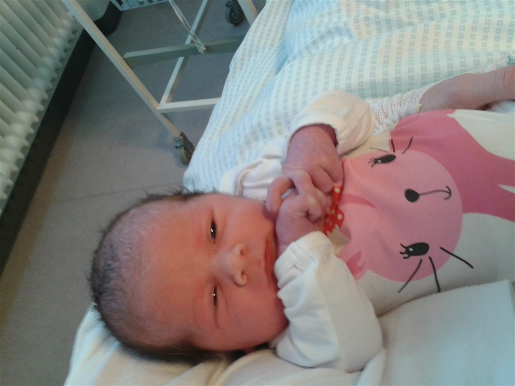 19/4 kl 8.59 kom lille tut til verden ved pks 37+2 3310 gram og 50 cm