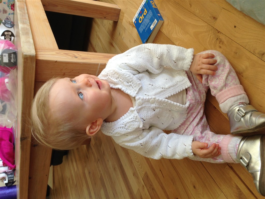 Francisca skriver: Ja så Fik prinsessen lige en hjemmestrikket cardigan igen af farmor Elsker alt det hjemmestrik