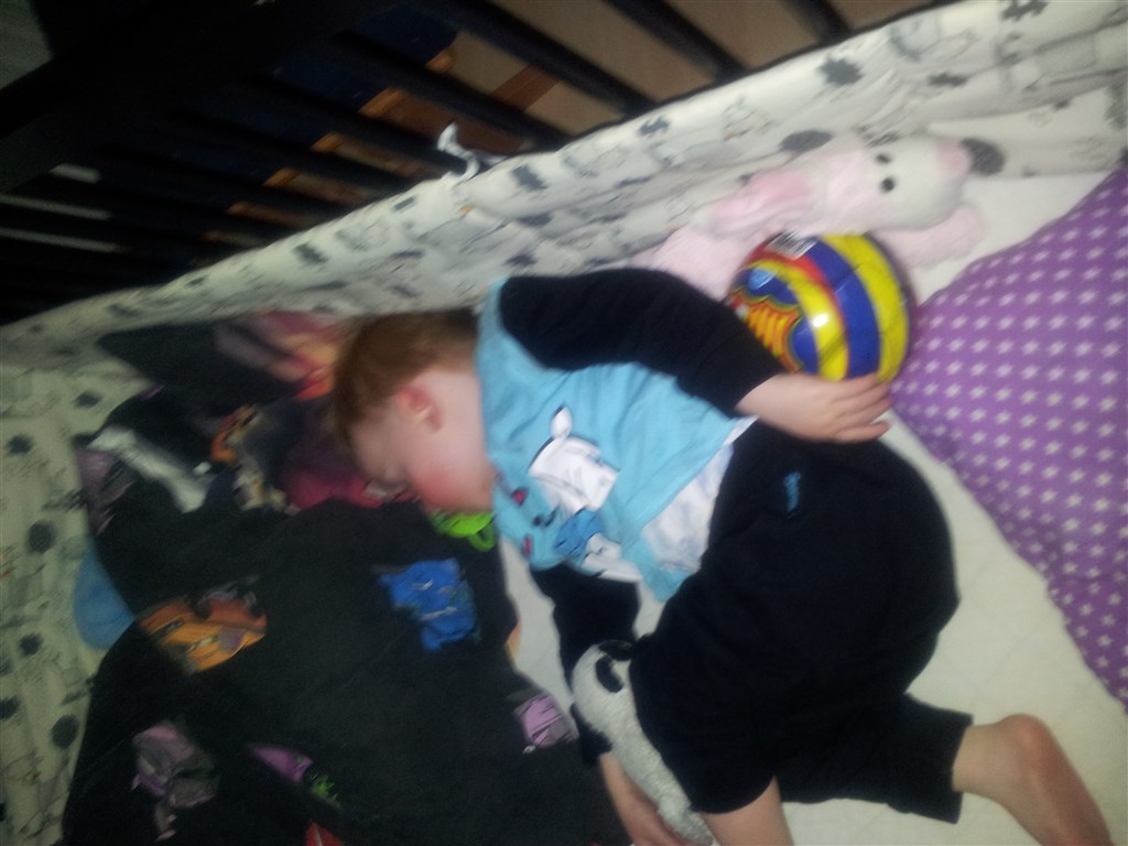 Da vi kom hjem ville han ha den med i seng. Han lå så i lang tid og sagde igen det er min, det er min:-)