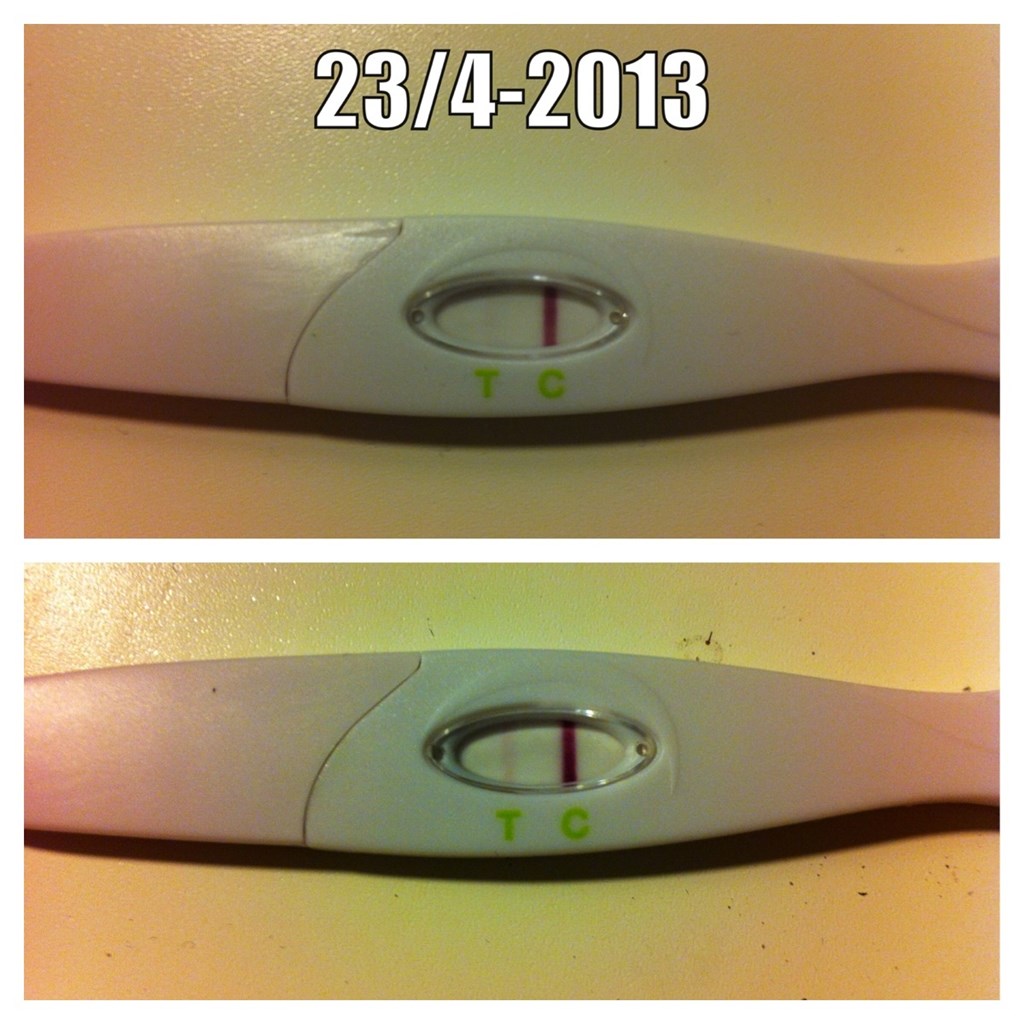 Fy ha, slemme mig. Har siden søndag testet, selvom jeg først skulle være 4+0 på lørdag. Men testene er kun blevet tydeligere (det øverste er taget 23/4 og det nederste er fra imorges) og clearblue siger gravid (taget her til morgen)