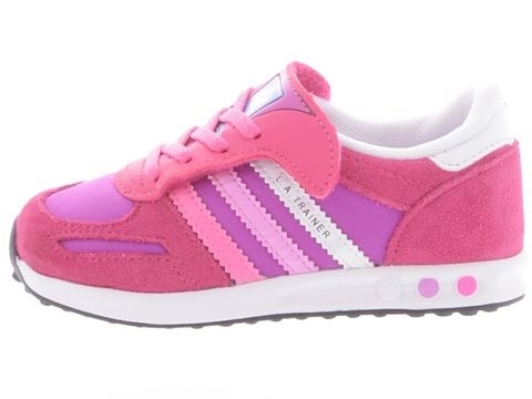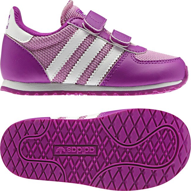 Freya på snart 2 år har brugt skindsko fra Angulus men har lige fået disse lækre sneakers fra Adidas, super lette og smarte! Flappen er velcro, rigtig smart!