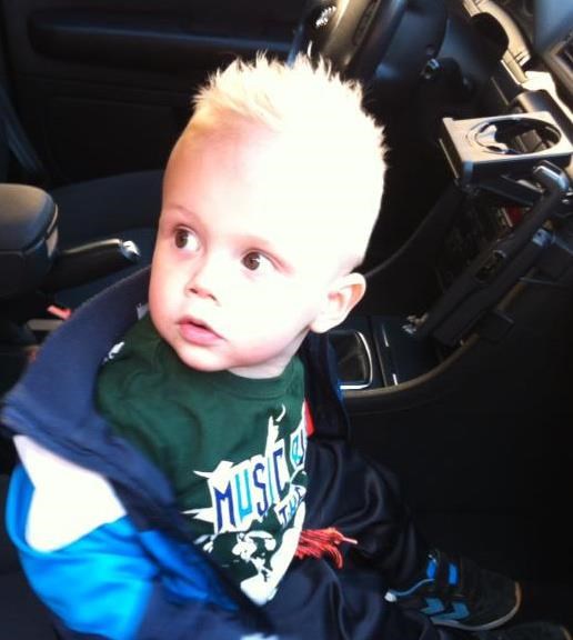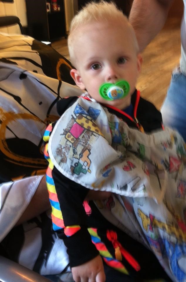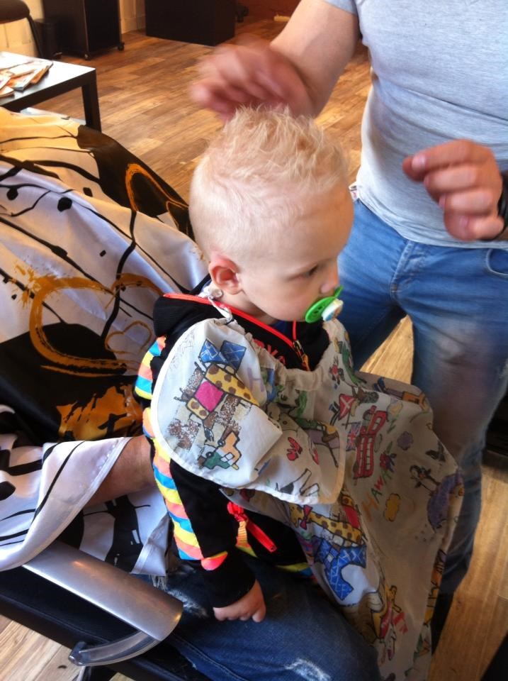 Her er det total modsat. Min dreng er 2 år, og bryder sig virkelig ikke om at blive klippet. Han skriger, tuder og skubber frisøren væk. Så snart hun holder op, smiler han og charmer der ud af. Han er blevet "klippet" idag. Ingen frisure som sådan, det er umuligt. Han har bare fået taget noget af længden.