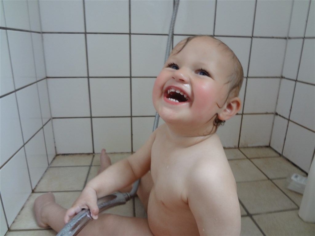 Hun elsker at kysse og kramme -og tumle. Hun sidder sjældent stille mere end 10 minutter ad gangen og fiser rundt som en skoldet skid
