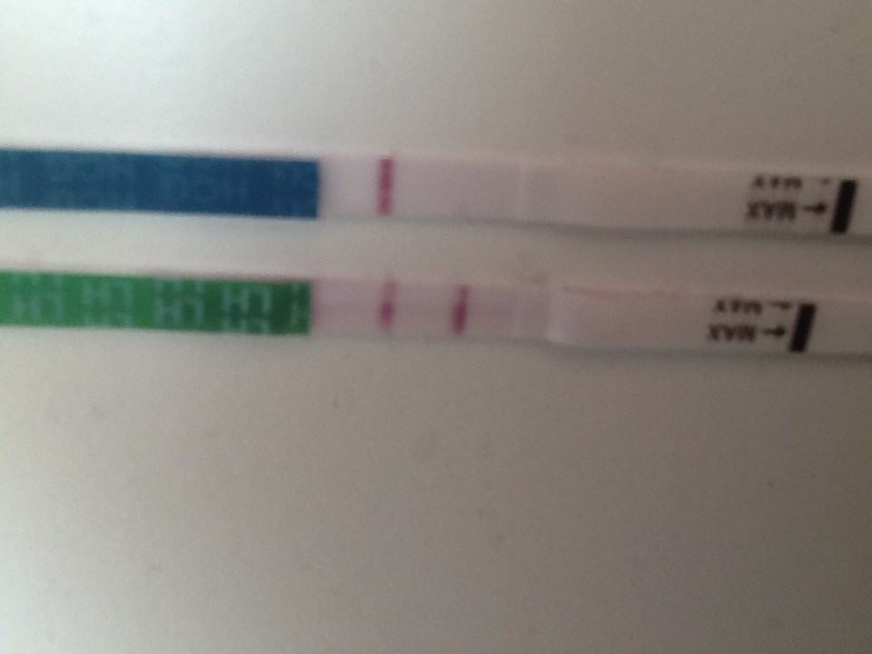 og nu kigger jeg på dem begge. Synes den stadig ser ret positivt ud min æg test.. Hvordan kan det være ?? Har jeg det stadig i kroppen, skal jeg være sammen med manden idag så. Synes min g test kommer med en lille streg øverst ... Forvirret er jeg