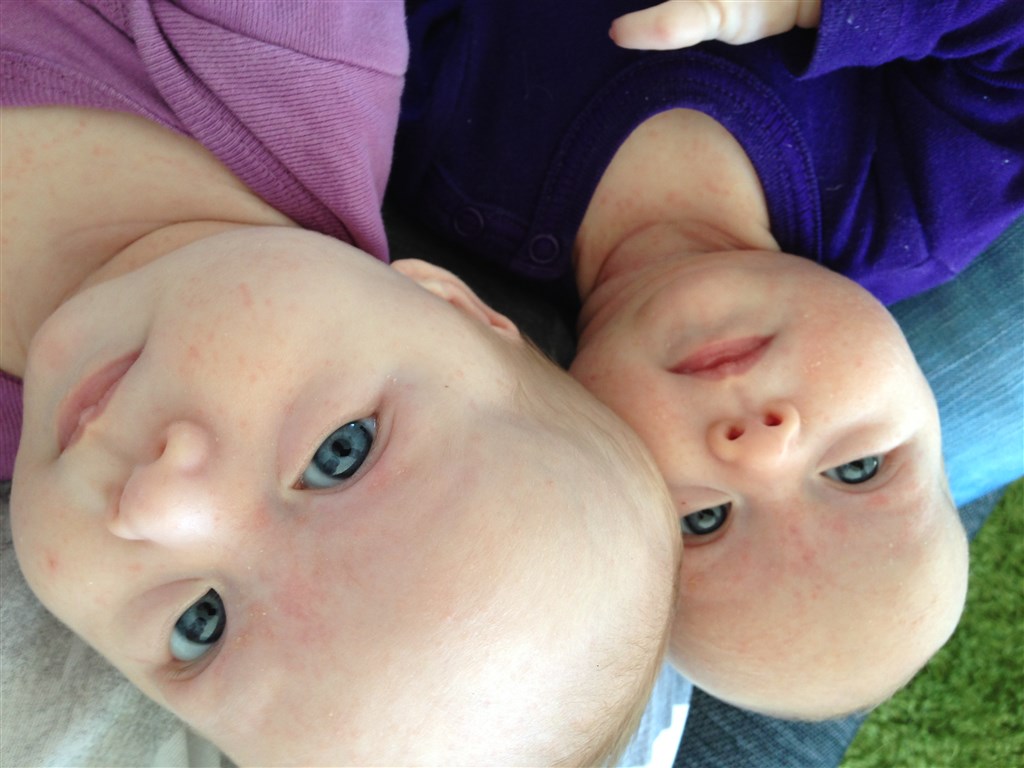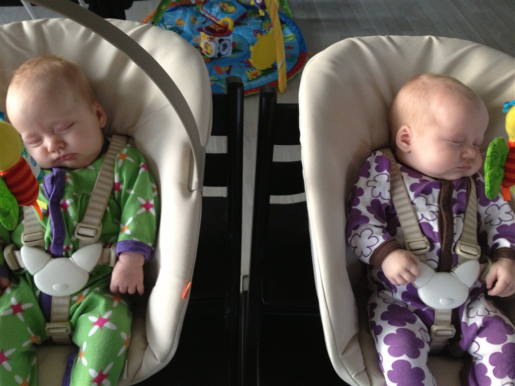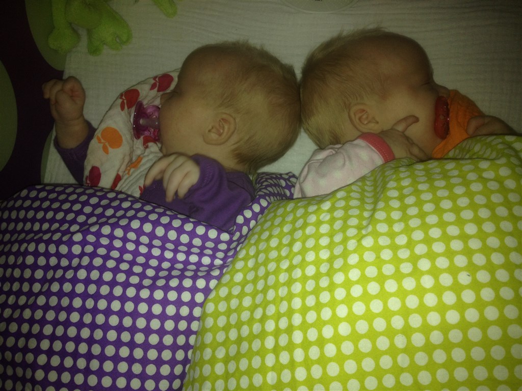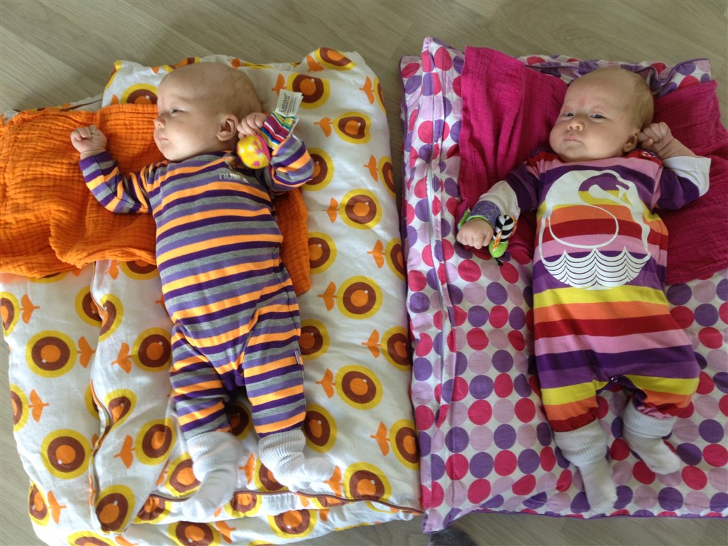 De sover godt om natten og spiser godt. Jeg fuld ammer stadig begge og er ovenud lykkelig for at det kan lade sig gøre.