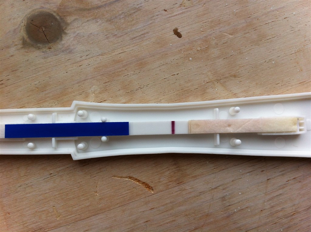 Så kunne jeg altså ikke vente til fredag, og det skulle jeg da også lige have høvl for. For første gang har jeg taget en test, som jeg ikke ved, hvad fortæller. Jeg kan ikke finde ud af om, og jeg kan ane en streg eller om jeg bare er blevet kuk af ventetiden.