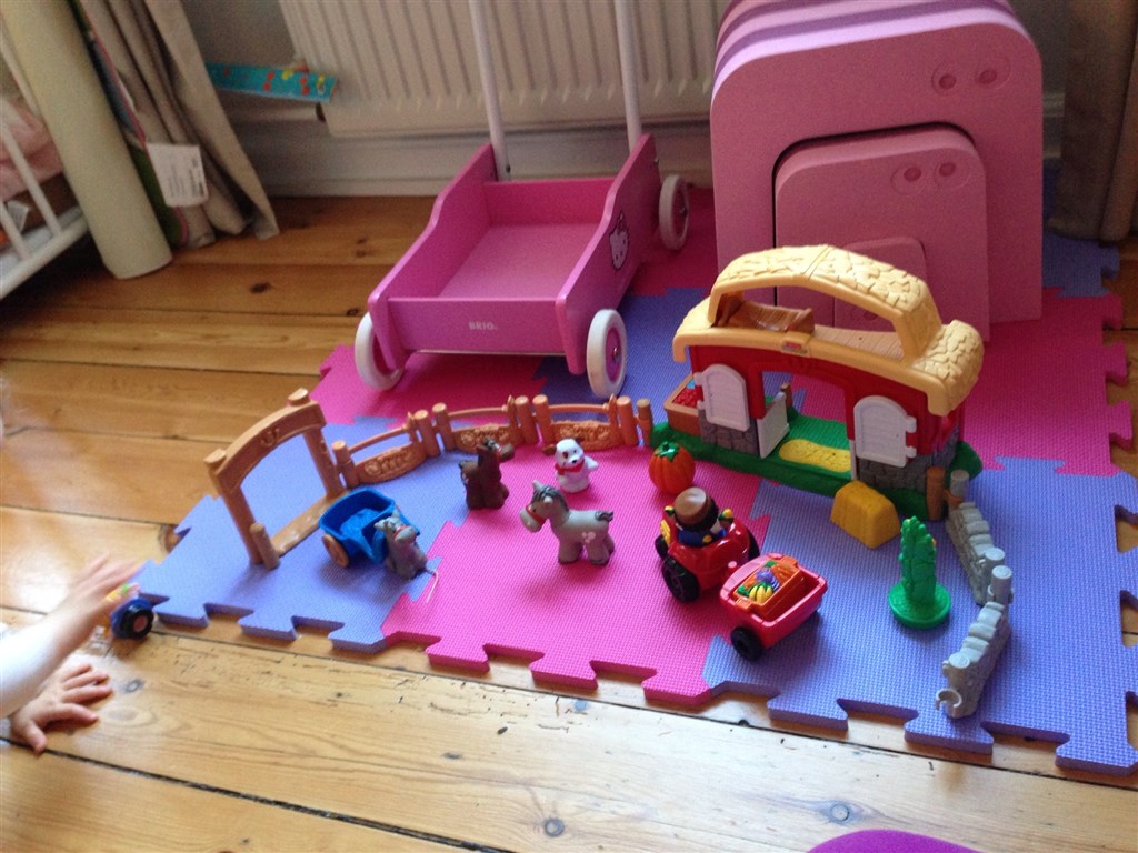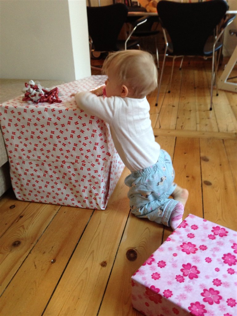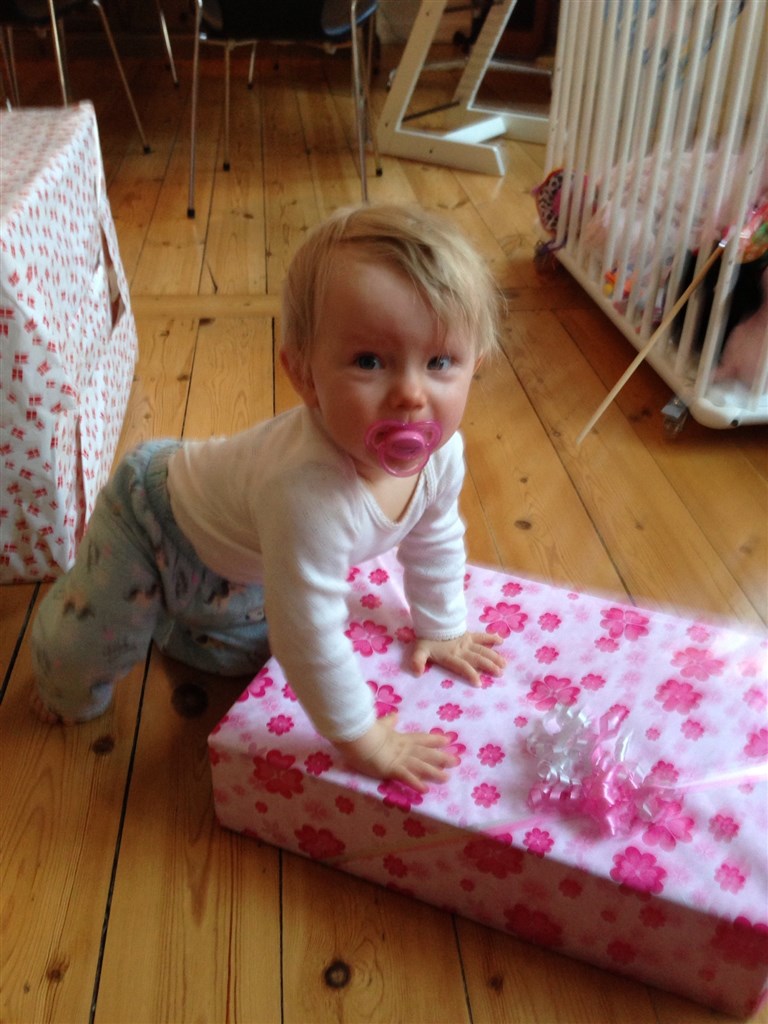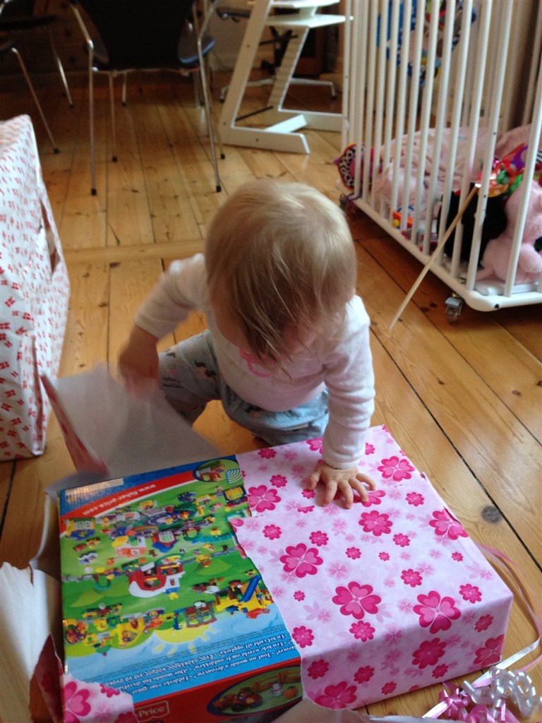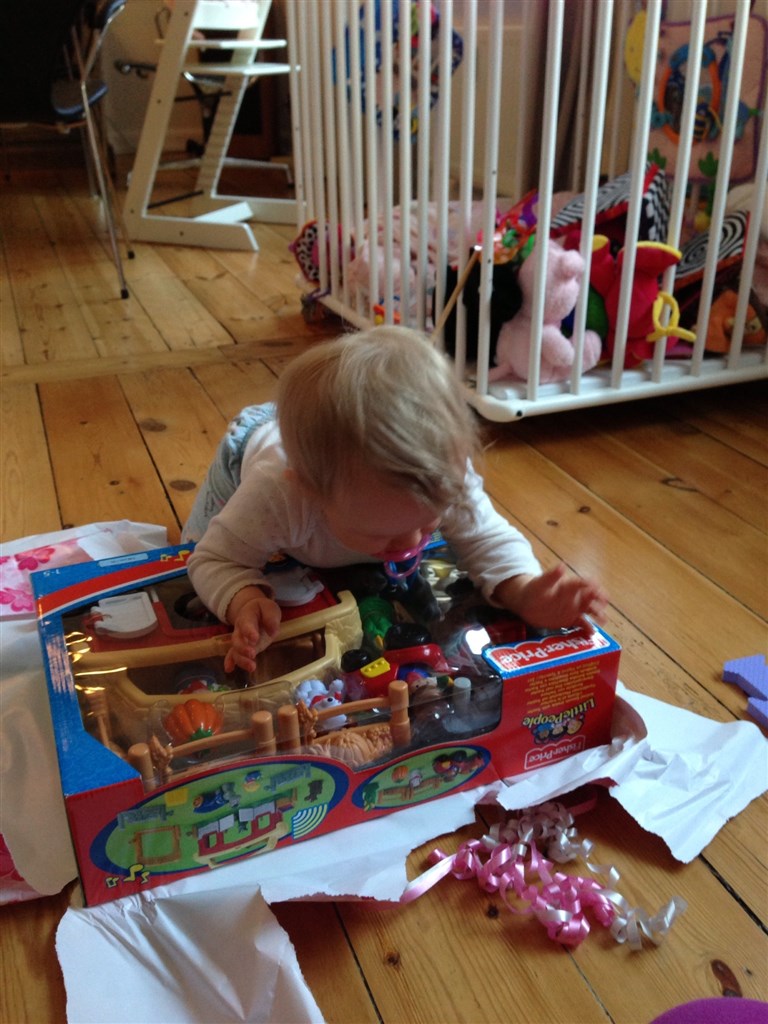 prinsessen har åbnet den ene gave idag fra mor og far som var en fisher price bondegård, den anden gave for hun senere