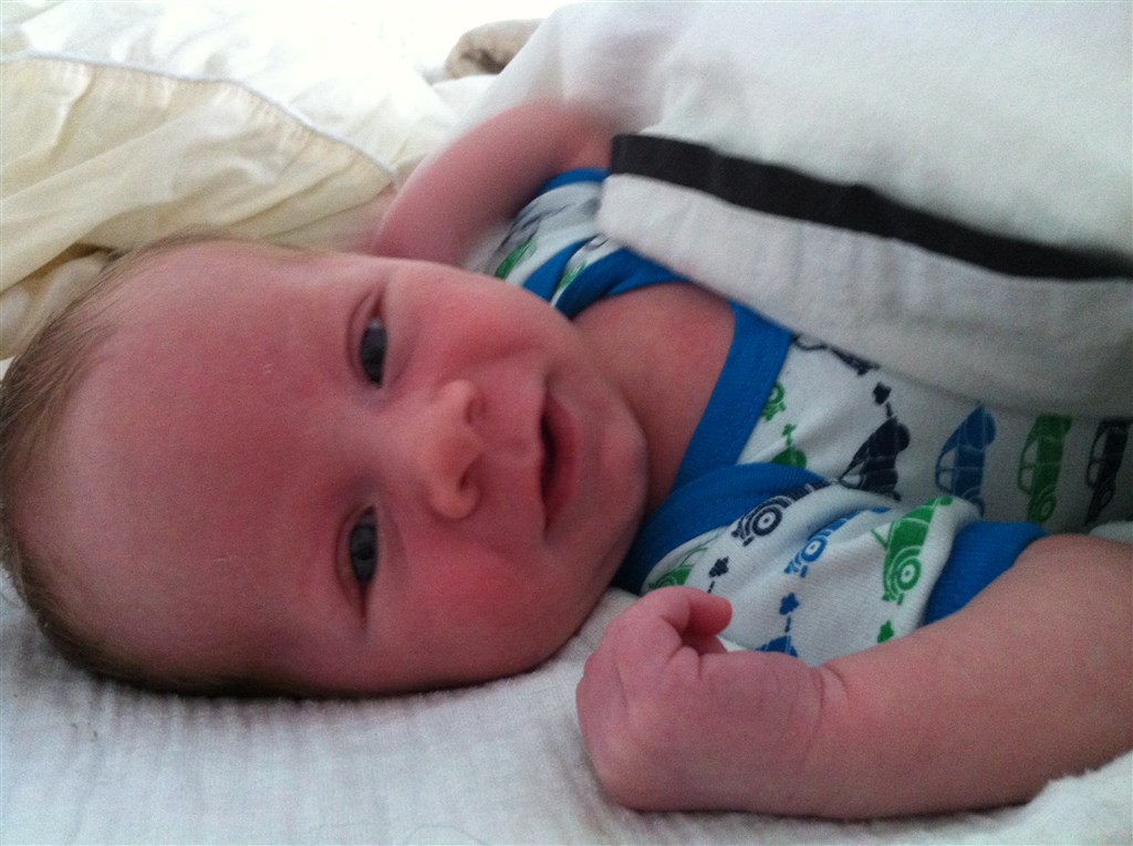 det kan godt være at supermanden var en del mindre end forventet/frygtet ved fødslen, men det er han da for alvor kommet efter, han vokser i REKORD fart!!