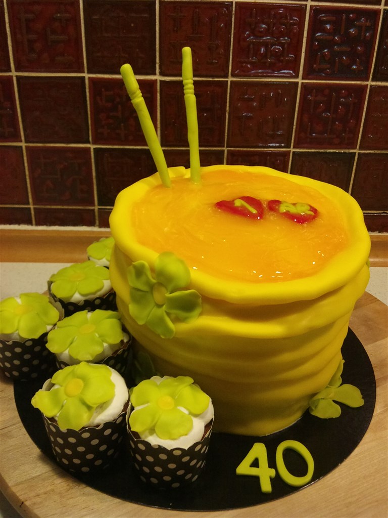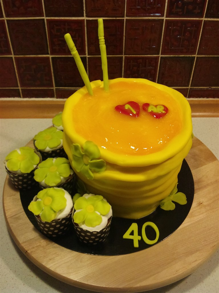Jeg har lavet en kage til min gode veninde, der blev 40 år, samtidigt var det også deres 1 års bryllupsdag.