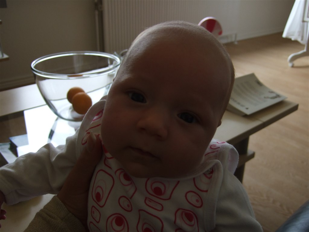 Han ser klart mere asiatisk ud end Rose gjorde, nu ved jeg ikke hvordan det udvikler sig. Han får større og større øjne synes jeg, men stadig - Han ligner Lars! Men hårfarven er dog min hos dem begge