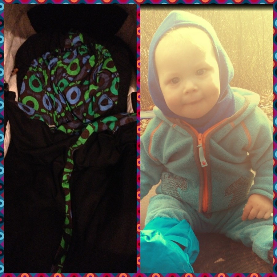 Vi startede ud med en fleece heldragt fra Molo, den der er lidt mere vat agtigt. Den var dejlig varm - hun kom til verden i februar.