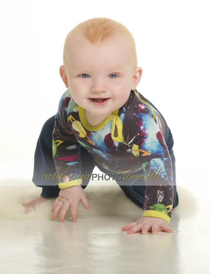 Han kravler rundt .. Rejser sig op af alting .. I går stod han midt ude på gulvet .. Han har 8 tænder .. Han har tralvt Store drenge . Var til fotograf med dem , så i får lige lidt billeder