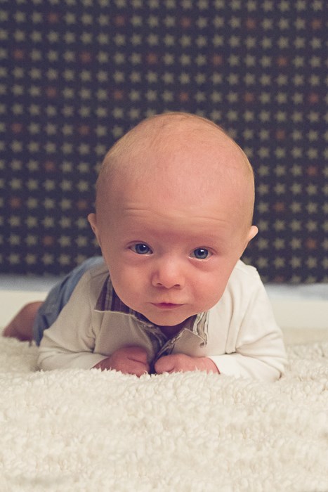 Rytmen med at sove meget og længe fortsætter, han spiser ca. hver 3. time i dagtimerne, og fra kl. ca. 18-05 vågner han 1-2 gange for at spise, så mor og far får sovet en del