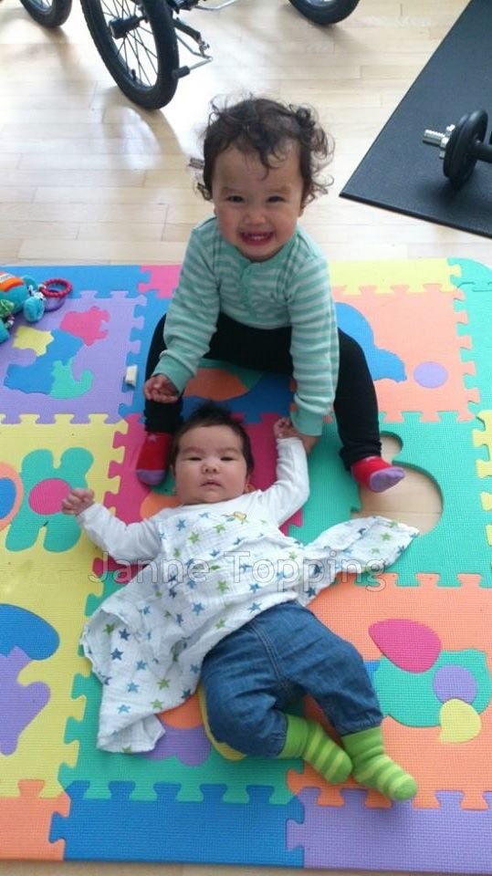 For mens James sov lur i barnevognen, og vi var i køkkenet, legede hun lige akrobat. Hun grinede pludselig højt, og da vi kom ind i stuen, sad hun i kravlegården