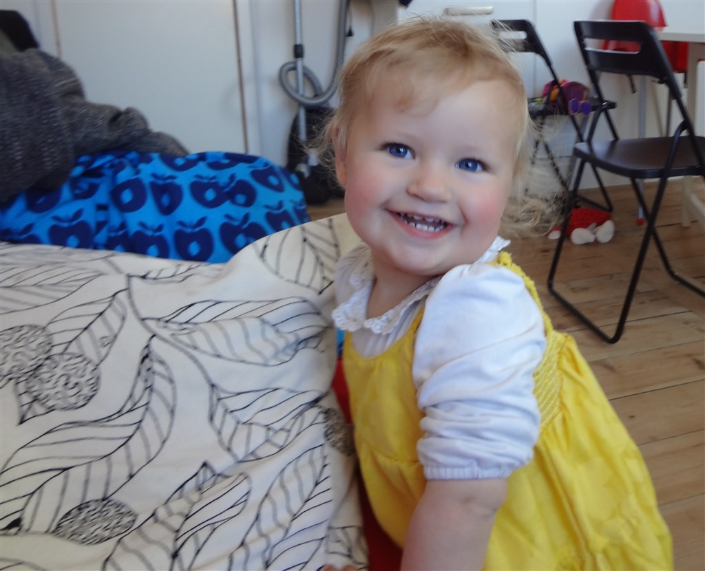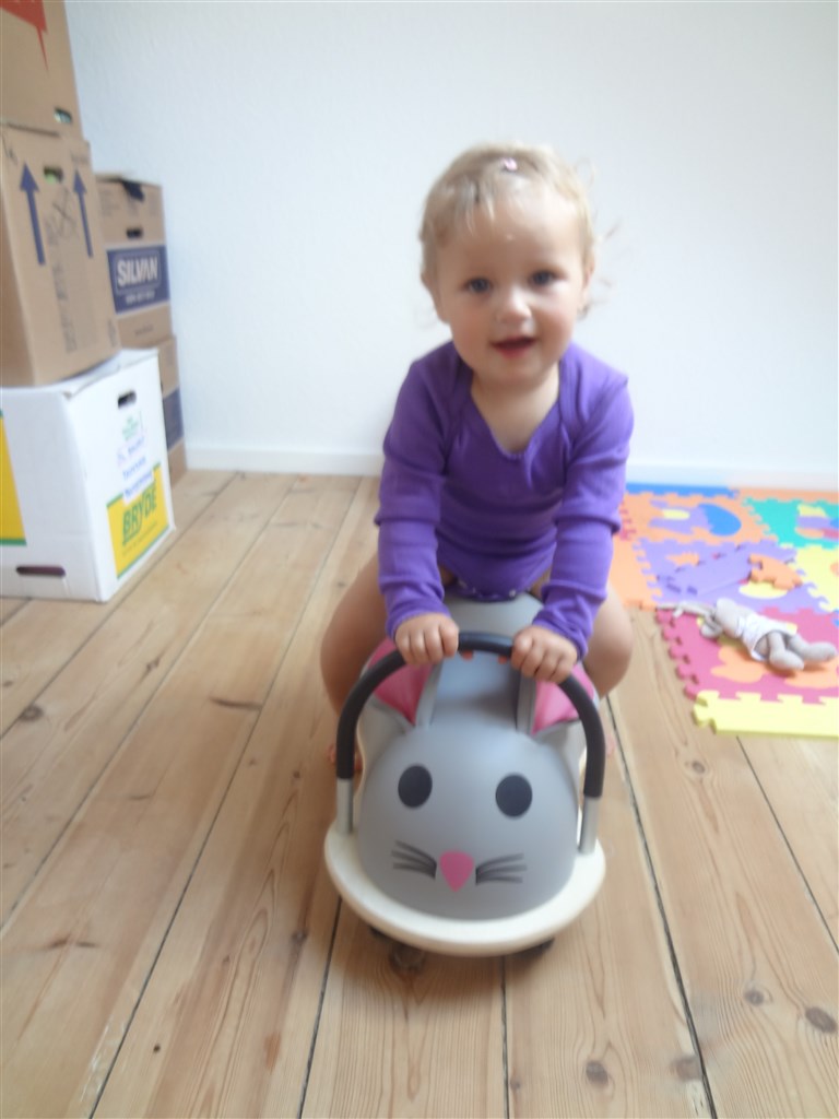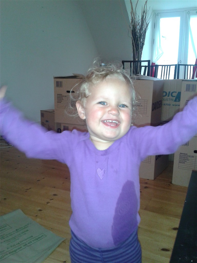 Vi er lige flyttet og hun elsker den ekstra plads og har nu også fået sit eget værelse som hun inden længe skal til at sove på - stor pige!