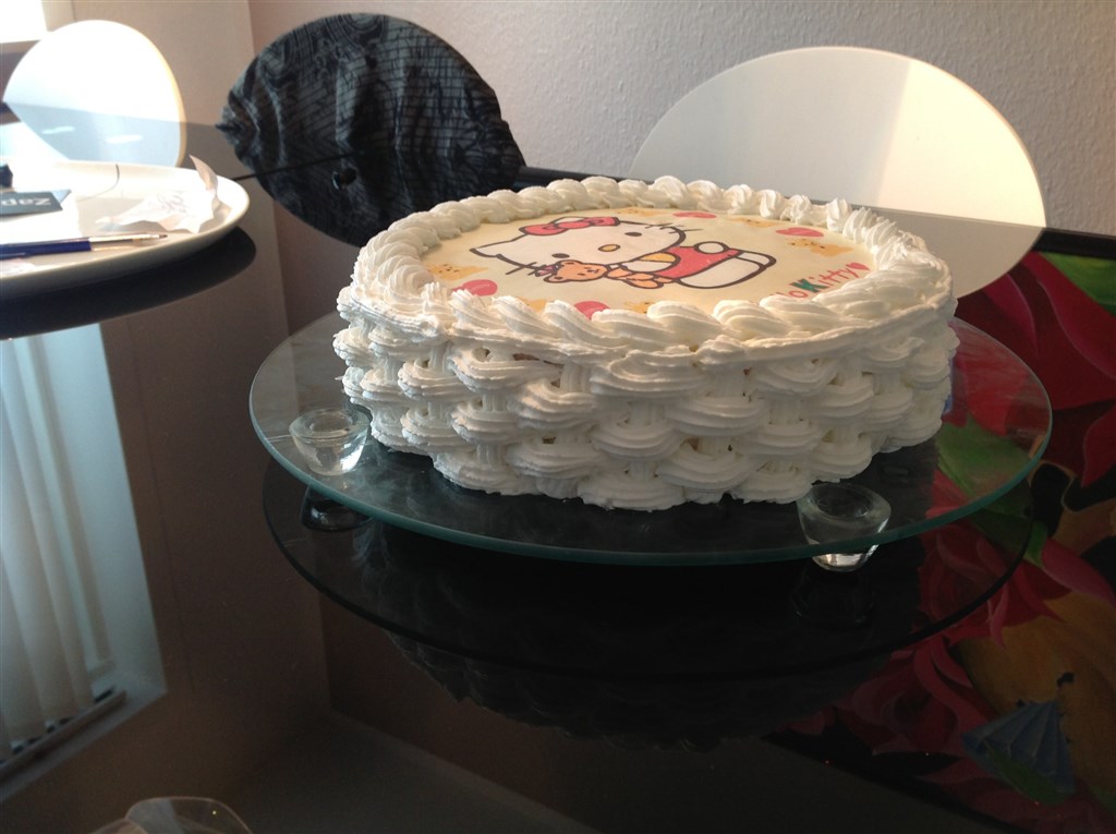 Min mor kommer i eftermiddag så ville lave en hurtig kage. Den tog så også kun en time fra start til slut. Havde lige et sukkerbillede liggende og så har jeg ikke prøvet at arbejde med en sprøjtepose før så det skulle lige prøves.
