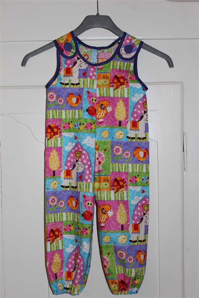 bøllen skriver: Ja på endnu en af det skønne regnvejrsdage blev disse bukser til. Skulle prøve min nye maskine. Så det blev til disse. Et Par søde sommer overalls med lilla kantbånd og knapper