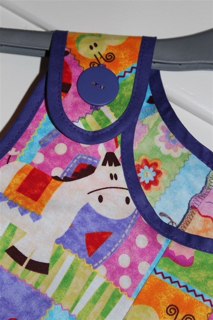 Et Par søde sommer overalls med lilla kantbånd og knapper