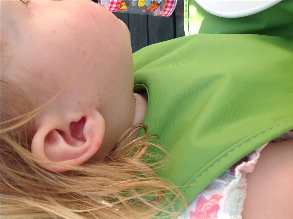 Men har nu opdaget disse knopper? Hvad er det? Er det bare varmeknopper? Hun hardem både inde i øret og rundt om.