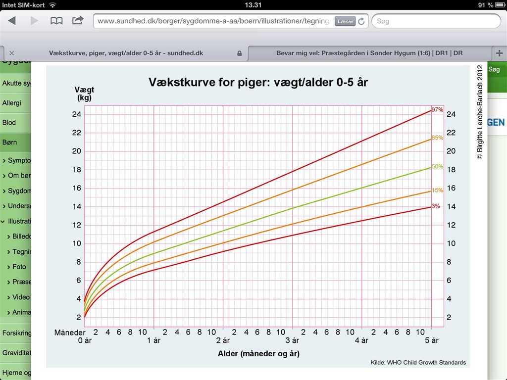 Lige for tiden er jeg inde i en periode, hvor jeg igen bekymrer mig helt vildt. Normalt tænker jeg ikke så meget over det, fordi hun spiser ok og ikke er så kræsen. Men vejede hende forleden, og hun har ikke taget på siden hun blev vejet til 15 mdrs vaccinen. Dvs. i 1,5 mdr.