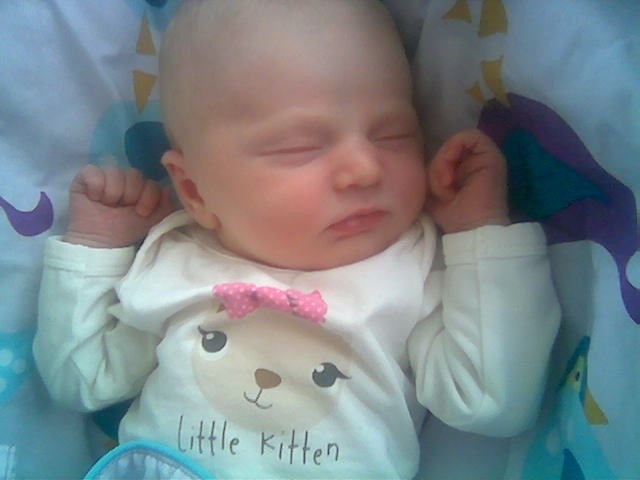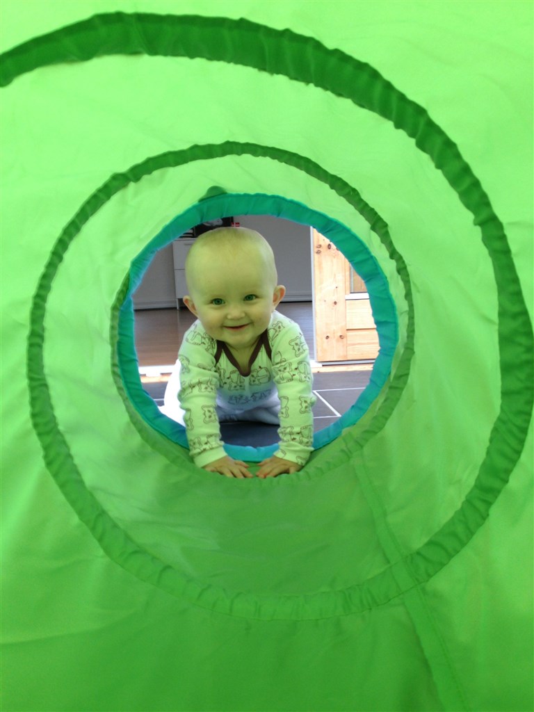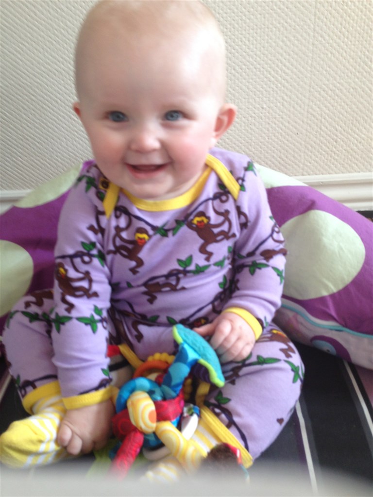 Hun kravler så fint, rejser sig alle steder, siger en del ord og er glad hele tiden og super mor kælle