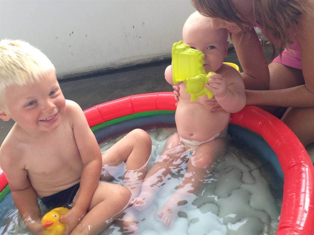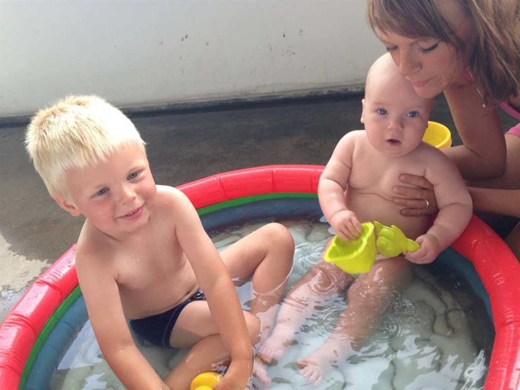 min bette basse var i sit bade bassin med storebror for første gang igår og han nød det i fulde drag!