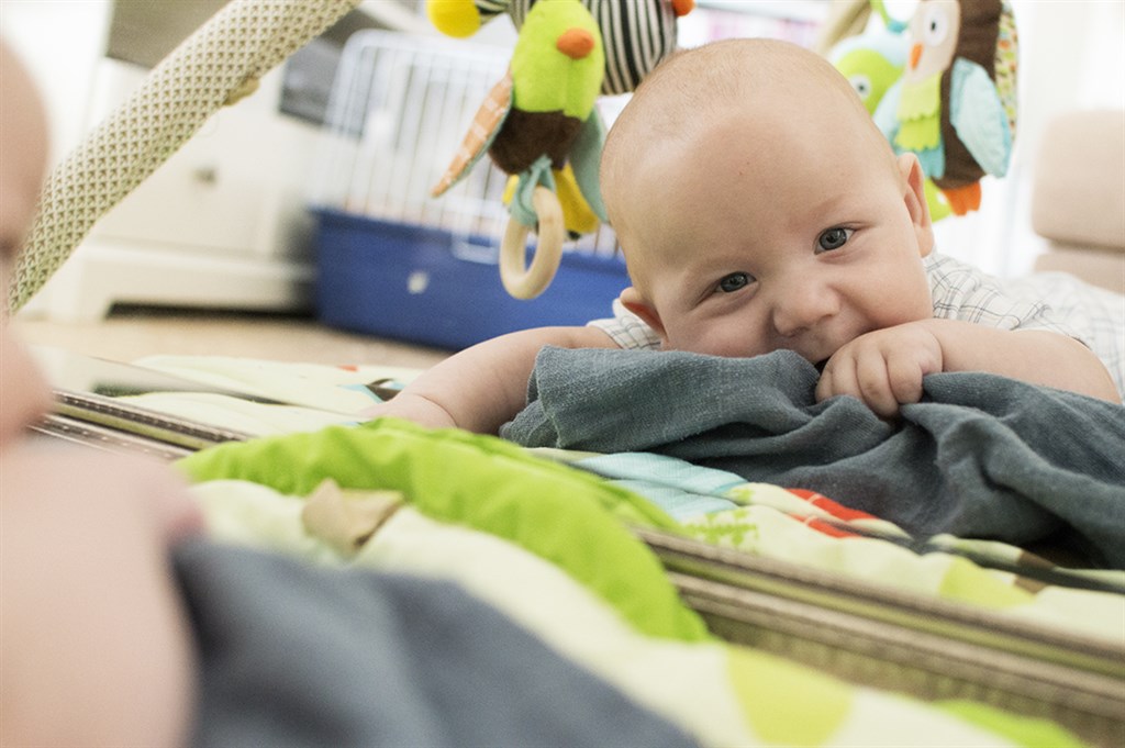Bertram er et stk. meget glad, livlig og nysgerrig baby. Han pludrer på livet løs, og er ved at få sine første tænder
