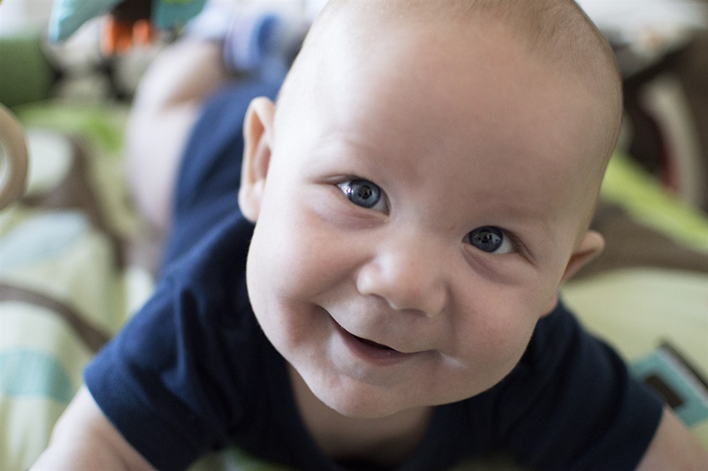 Tulle83 skriver: Så blev vores lille Mr. B 5 måneder, som tiden dog flyver! Bertram er et stk. meget glad, livlig og nysgerrig baby. Han pludrer på livet løs, og er ved at få sine første tænder