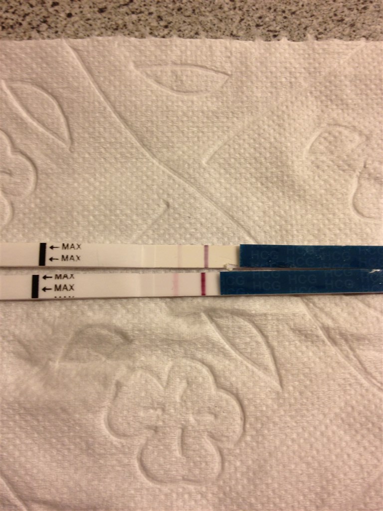 Jeg er gravid !! Juuuuuhuuuu, men hvorfor er der så stor forskel på dem . Det første billede er fra i morges .